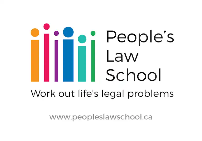 This postcard highlights how People's Law School helps British Columbians work out life’s legal problems. The postcard is 3.5” x 5”.