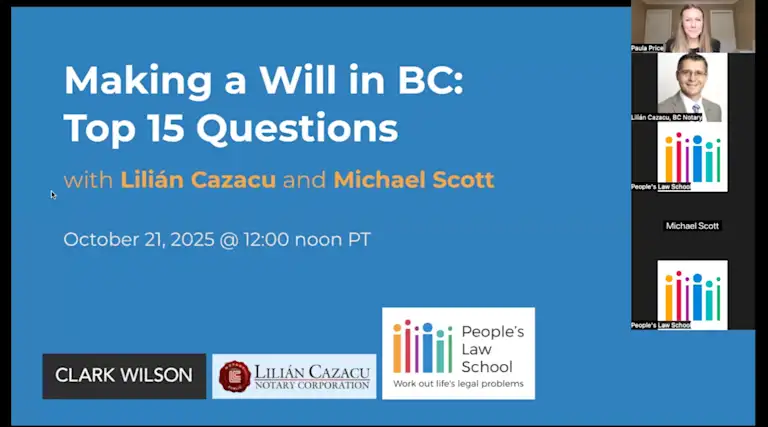 Clinic locations in the Lower Mainland prepare and advise on wills for low-income seniors.